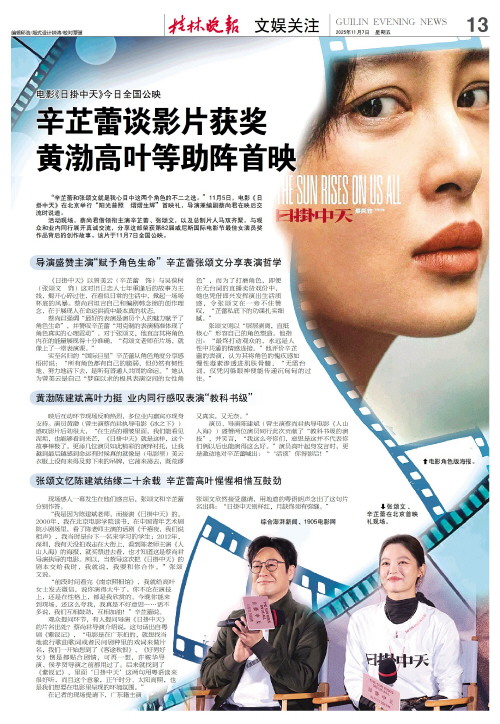 “辛芷蕾和张颂文就是我心目中这两个角色的不二之选。”11月5日,电影《日掛中天》在北京举行“阳光普照 熠熠生辉”首映礼,导演兼编剧蔡尚君在映后交流时说道。