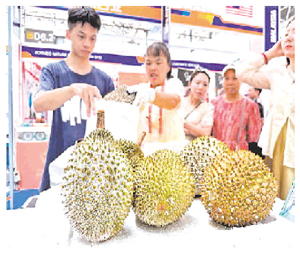 往届东博会上,消费者在购买马来西亚猫山王榴莲。