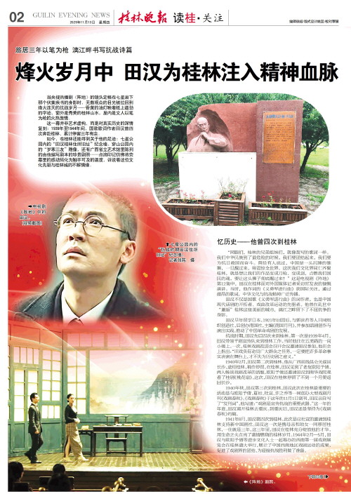 旅居三年以笔为枪 漓江畔书写抗战诗篇 烽火岁月中 田汉为桂林注入精神血脉 上接02版