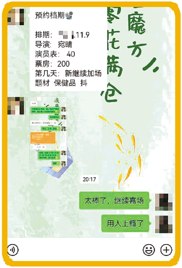 记者在多个社交平台搜索发现,有不少关于“直播间数据‘加热’”的宣传广告。一名博主发文称,可“手动刷推荐、配合带节奏”。由此还产生了行业“黑话”:用户购买服务被称为“买菜”,售卖直播数据的人称为“导演”,参与互动的真人称为“演员”,购买的总数称为“票房”。