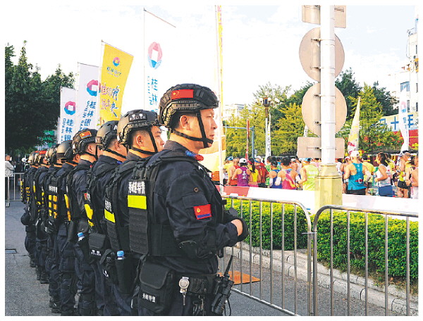 民警正在赛事起点开展执勤工作。通讯员周柏利 摄