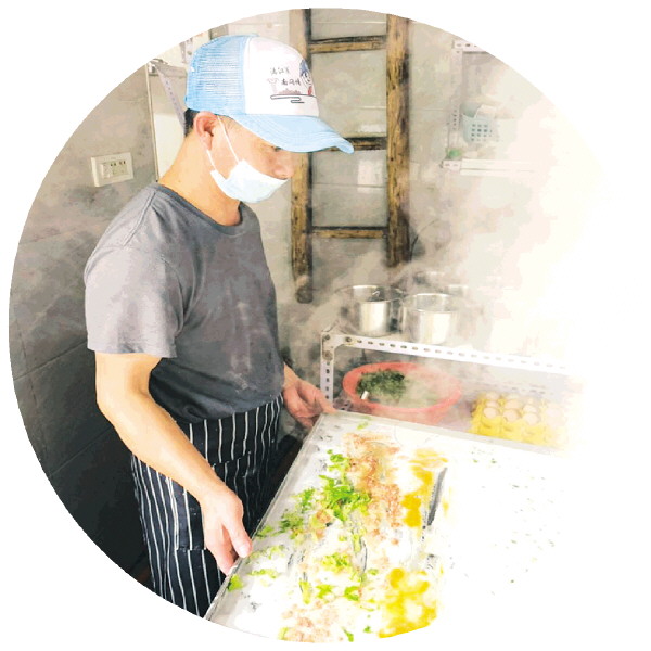 陈满军在制作肠粉。