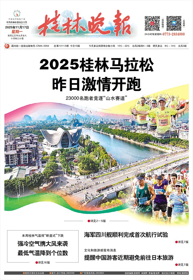 本报讯(记者陈静 通讯员吴敏 吴建林)11月16日上午8时,2025桂林马拉松在中心广场鸣枪开跑。2.3万名参赛选手沿漓江畔逐风前行,在如画的山水间展开竞技。在这场体育盛会背后,桂林市公安局投入大量警力,以严密安保与暖心服务全程守护赛事平安。