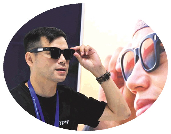 9月19日,参观者在2025中国国际消费电子博览会上体验智能眼镜。 新华社发