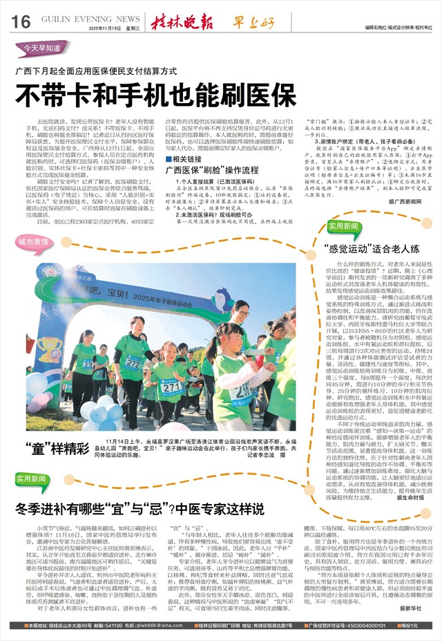 广西下月起全面应用医保便民支付结算方式 不带卡和手机也能刷医保   去医院就诊,发现忘带医保卡?老年人没有智能手机,无法扫码支付?没关系!不带医保卡、不用手机,刷脸也将能全部搞定!记者近日从自治区医疗保障局获悉,为提升医保便民支付水平,保障参保群众权益及医保基金安全,广西将从12月1日起,全面应用医保便民支付结算方式。参保人员在定点医药机构就医购药时,可选择扫医保码(医保亲情账户)、人脸识别、实体社保卡+社保卡密码等其中一种安全核验方式完成医保基金结算。