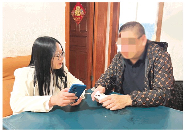 韩佩芸(左)在了解帮扶对象的生活情况。