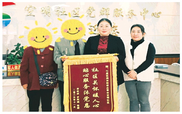 近日,七星区漓东街道空明社区党群服务中心内暖意融融,居民黄先生夫妇将一面印有“社区关怀暖人心 贴心服务沐党恩”的鲜红锦旗,郑重地送到社区负责人手中。这面锦旗不仅承载着老两口对社区一年来悉心帮扶的感激之情,更见证了空明社区以党建为引领、以民生为根本的基层治理实践。
