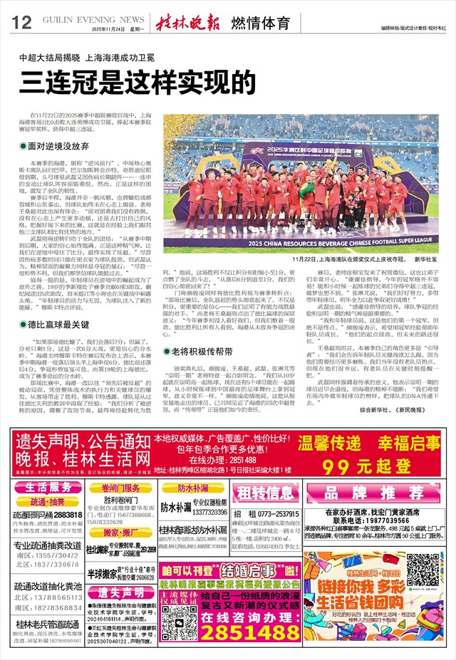 赛季后半程,海港并非一帆风顺,也曾输给成都蓉城和山东泰山,但球队始终未在心态上崩盘。老将王燊超对此也深有体会:“面对困难我们没有跌倒,没有在心态上产生更多动摇,还是去打出自己的风格,把握好接下来的比赛,这就是在经验上我们跟其他三支球队相比有优势的地方。”