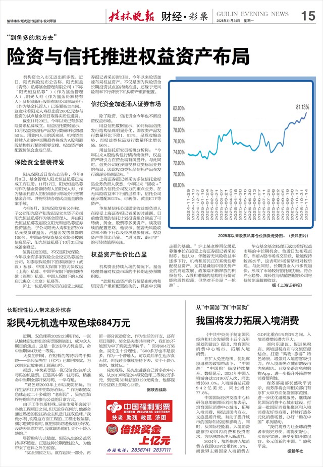 截至11月20日,今年以来已有多家险资系私募成立。用益信托数据显示,10月权益类信托产品发行数量环比增超50%。用业内人士的话来说,机构资金持续入市的中长期趋势将成为A股和港股结构性行情的重要支撑,权益资产的配置价值会愈发凸显。