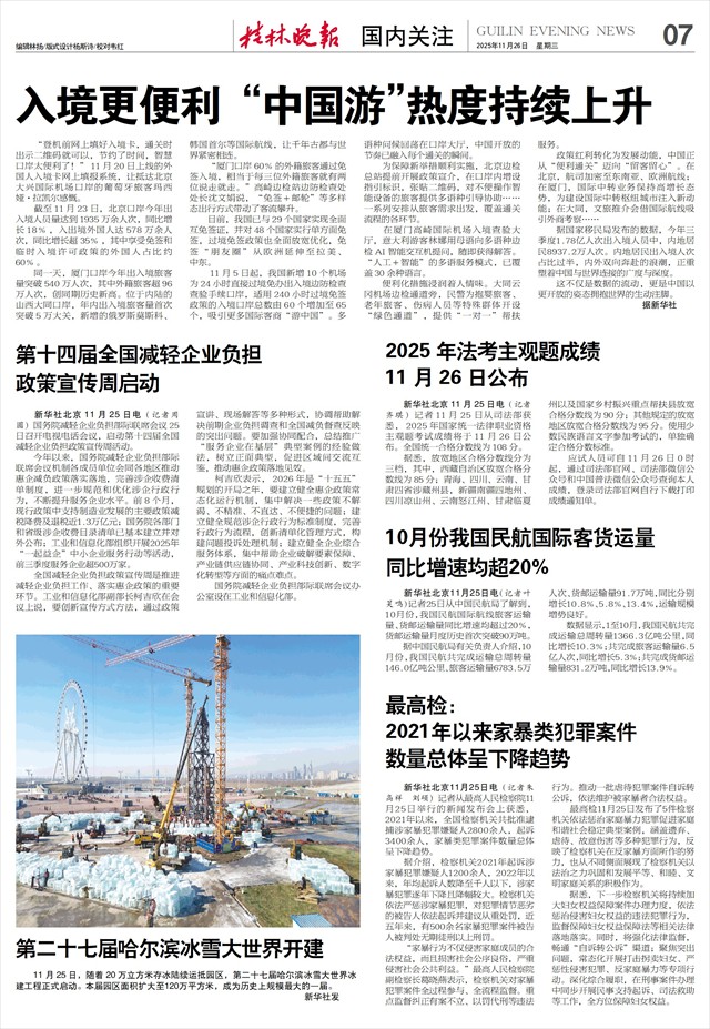 1万亿元MLF操作   为保持银行体系流动性充裕,中国人民银行11月24日发布预告称,将于25日以固定数量、利率招标、多重价位中标方式开展1万亿元中期借贷便利(MLF)操作,期限为1年期。鉴于11月有9000亿元MLF到期,当月央行MLF净投放规模将达到1000亿元,为央行连续第九个月对MLF加量续作。