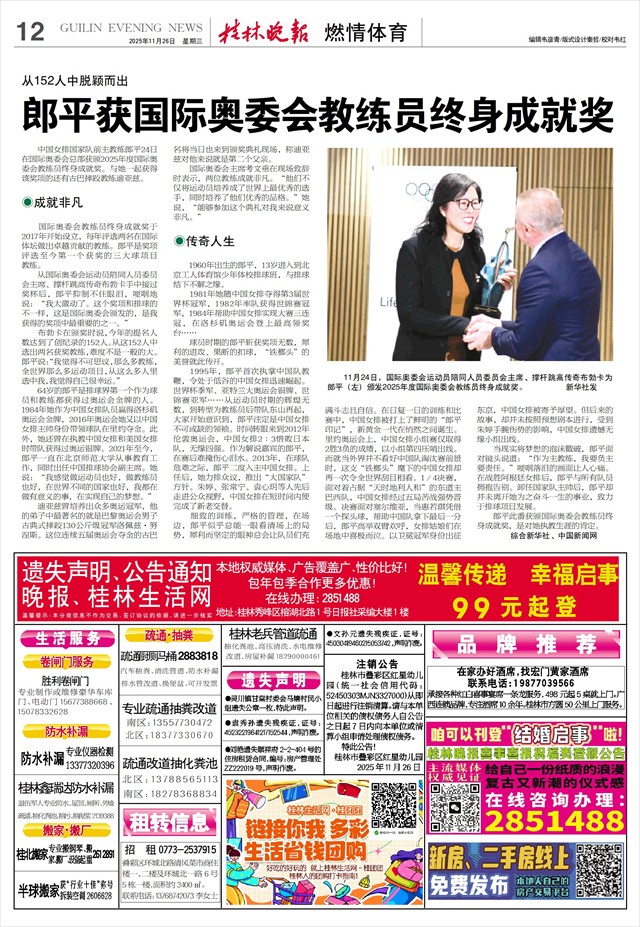 郎平此番获颁国际奥委会教练员终身成就奖,是对她执教生涯的肯定。