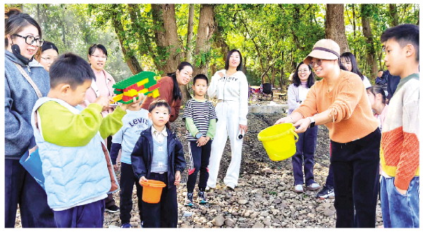 近日,在龙门大桥附近的河滩上,家长们趁着好天气带着孩子来到这里尽情嬉戏,在大自然里享受亲子互动的快乐。 记者滕嘉 摄