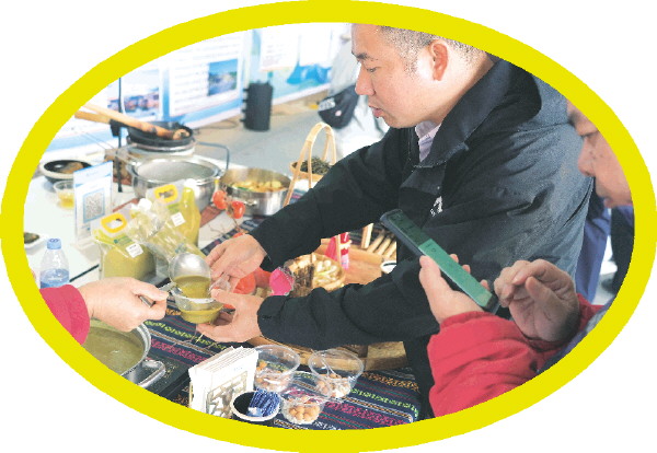 赛场外,人们在品尝油茶。