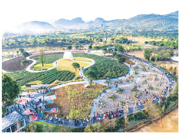 参加2025桂林漓江徒步大会的市民和游客,行走在莲花源景区。 记者唐艳兰 摄