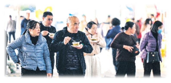 →比赛期间,嘉年华、电音节、非遗市集等配套活动同步开展。图为赛场外,人们逛市集、品尝美食。