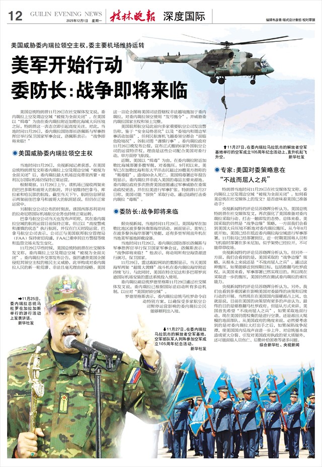特朗普当地时间11月29日在社交媒体发文称,委内瑞拉上空及周边空域“被视为全面关闭”。如何看美总统在社交媒体上的发文?是否意味着美国已准备动手?
