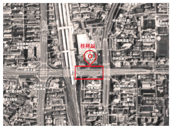 图为待美化的上海路下穿通道所处的位置。(鸟瞰示意图)