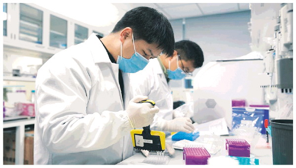 11月20日,在苏州一家生物制药公司,实验人员在提取信使核糖核酸。 新华社发