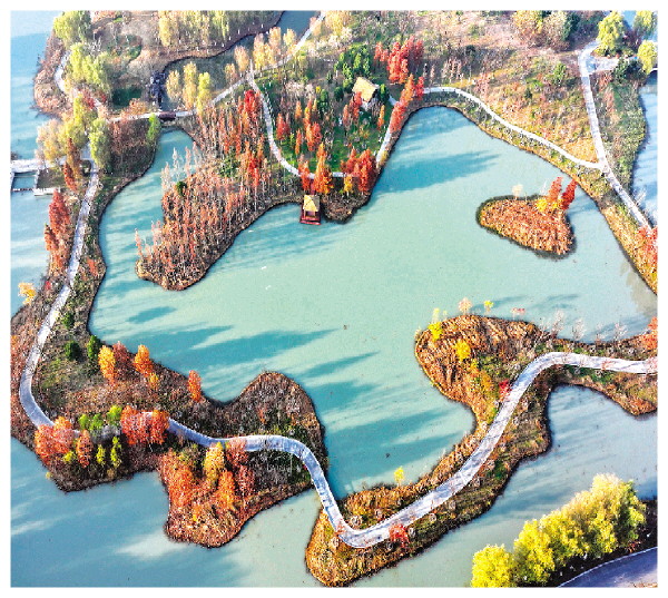 这是12月7日在江苏扬州北湖湿地公园拍摄的冬景(无人机照片)。