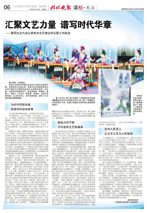 汇聚文艺力量 谱写时代华章 ——第四次文代会以来我市文艺事业和文联工作综述   漓水悠悠,文韵绵长。