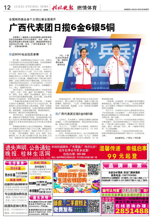 12月9日,在全国第十二届残运会暨第九届特奥会赛场,广西代表团捷报频传:残运会斩获5金5银4铜,特奥会夺得1金1银1铜。