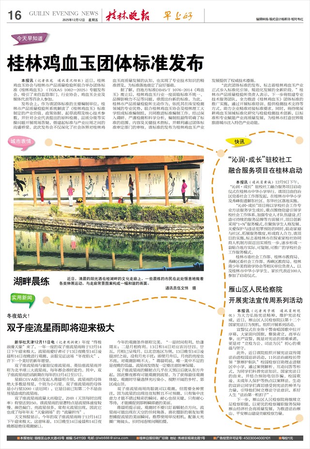 桂林鸡血玉团体标准发布   本报讯(记者张苑 通讯员沈绍钦)近日,桂林鸡血玉协会与桂林市产品质量检验所联合举办团体标准《桂林鸡血玉》(TGXAS 1082—2025)专题发布会,吸引了来自监管部门、行业协会、鸡血玉企业及媒体代表等百余人参加。