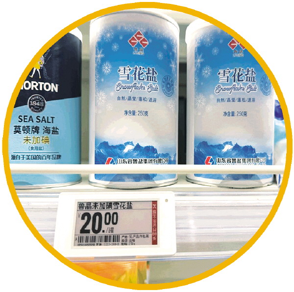 货架上琳琅满目的食盐,让消费者挑花了眼。
