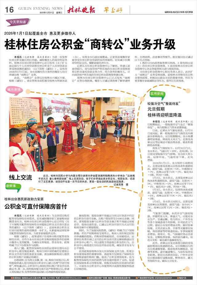 2026年1月1日起覆盖全市 惠及更多缴存人 桂林住房公积金“商转公”业务升级   本报讯(记者陈静 通讯员梁琼)为进一步发挥住房公积金惠民利民功能,减轻缴存人的商贷利息负担,桂林市住房公积金管理中心近日发布《关于扩大商业银行个人住房贷款转住房公积金个人住房贷款业务受理范围的通知》(以下简称《通知》),宣布自2026年1月1日起,全市范围内符合条件的缴存人均可申请办理“商转公”业务。