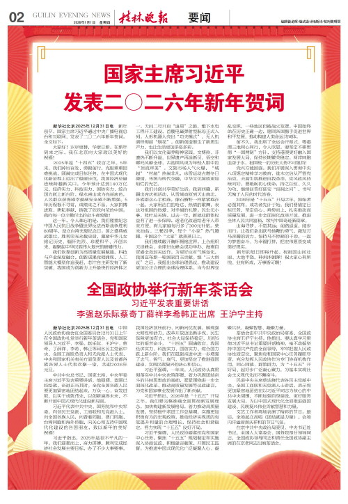 发表二〇二六年新年贺词   新华社北京2025年12月31日电 新年前夕,国家主席习近平通过中央广播电视总台和互联网,发表了二〇二六年新年贺词。全文如下: