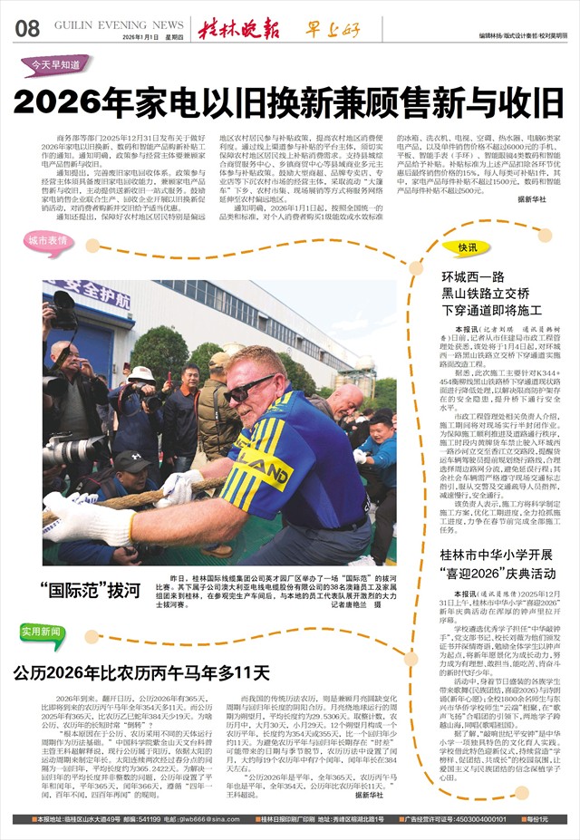 本报讯(通讯员陈倩)2025年12月31日上午,桂林市中华小学“喜迎2026”新年庆典活动在浑厚的钟声里拉开序幕。
