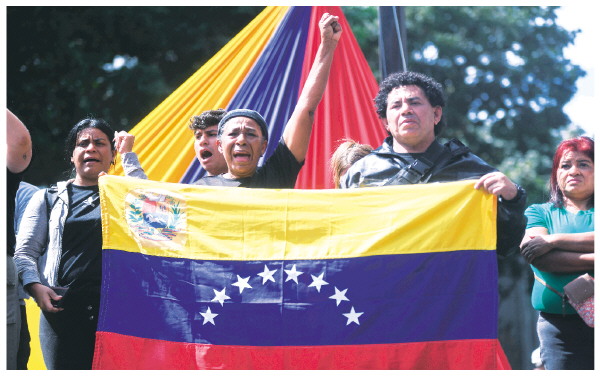 1月3日,在委内瑞拉首都加拉加斯,民众在米拉弗洛雷斯宫附近集会。 新华社发