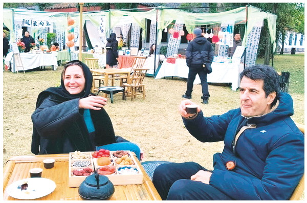 图为两位来自意大利的游客在品茶,沉浸式感受中国传统文化魅力。