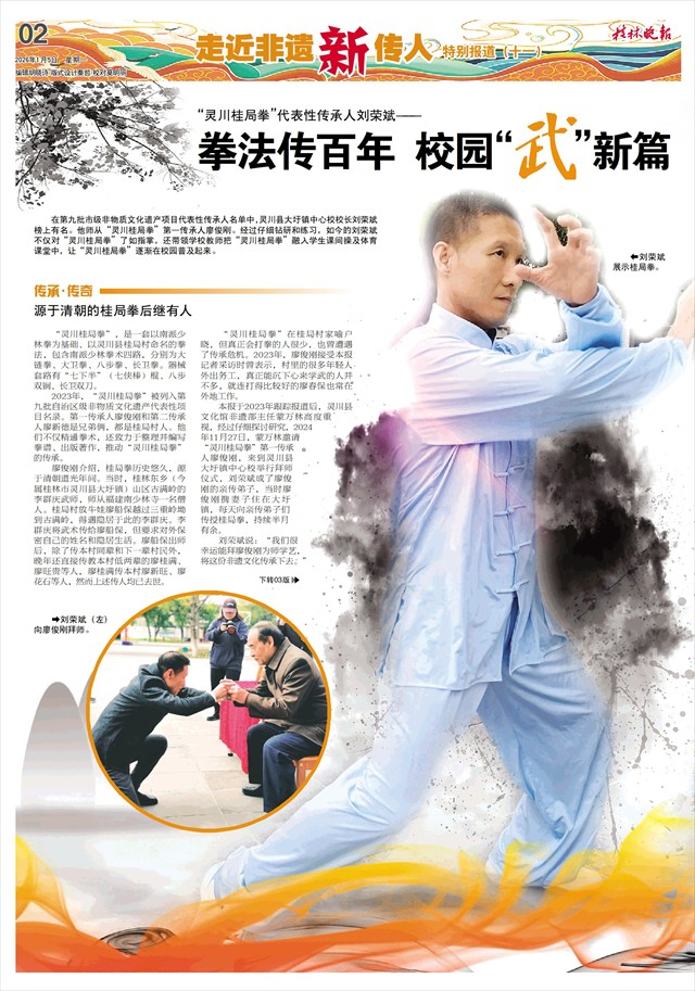 2023年,“灵川桂局拳”被列入第九批自治区级非物质文化遗产代表性项目名录。第一传承人廖俊刚和第二传承人廖新德是兄弟俩,都是桂局村人。他们不仅精通拳术,还致力于整理并编写拳谱、出版著作,推动“灵川桂局拳”的传承。