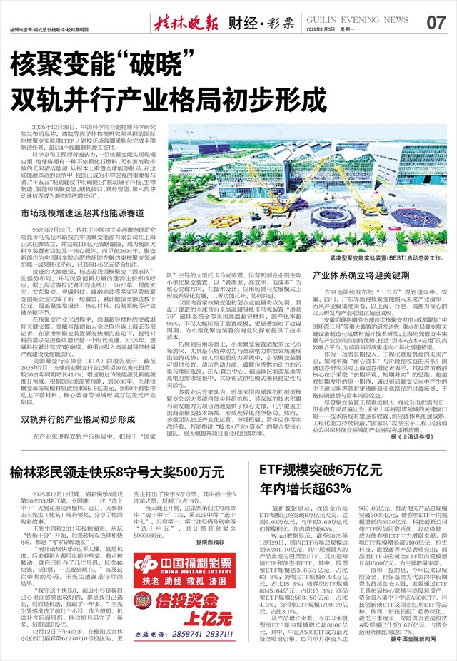 尽管聚变装置工程难度极大,商业发电仍需时日,但业内专家普遍认为,未来十年将是该领域的关键窗口期——技术路线有望逐步收敛、供应链体系加速成熟、工程化能力持续锻造,“国家队”攻坚主干工程、民营商业公司深耕细分领域的产业格局将逐渐清晰。