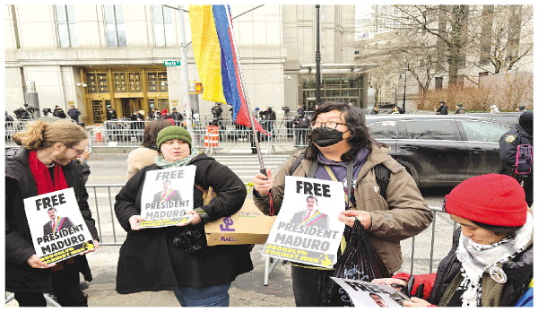 遭美国强行控制的委内瑞拉总统马杜罗夫妇1月5日中午在美国纽约南区联邦地区法院首次出庭,拒绝美方所谓“犯罪”指控。