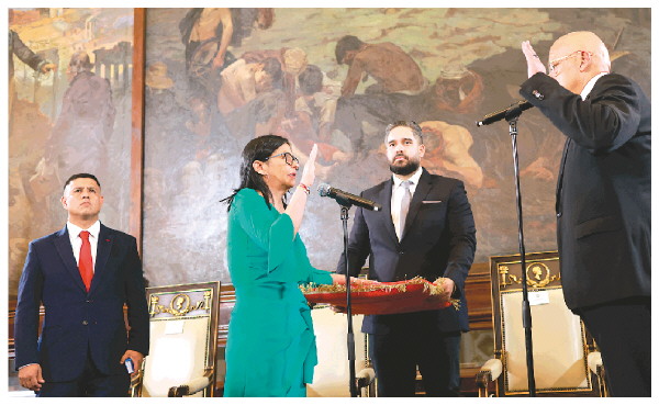 1月5日下午,委内瑞拉代理总统德尔西·罗德里格斯在该国全国代表大会宣誓就任委临时总统。 新华社发