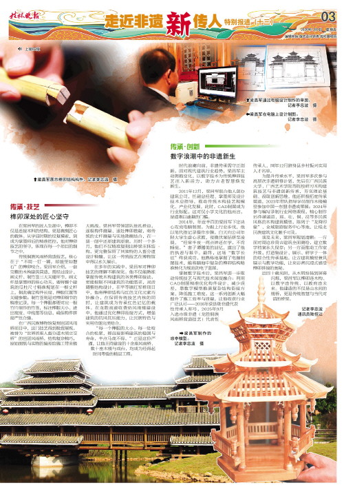时代浪潮向前,非遗传承需守正创新。面对现代建筑行业趋势,梁昌军主动拥抱变化,以数字技术为传统榫卯技艺注入新活力,助力古老智慧焕发新生。