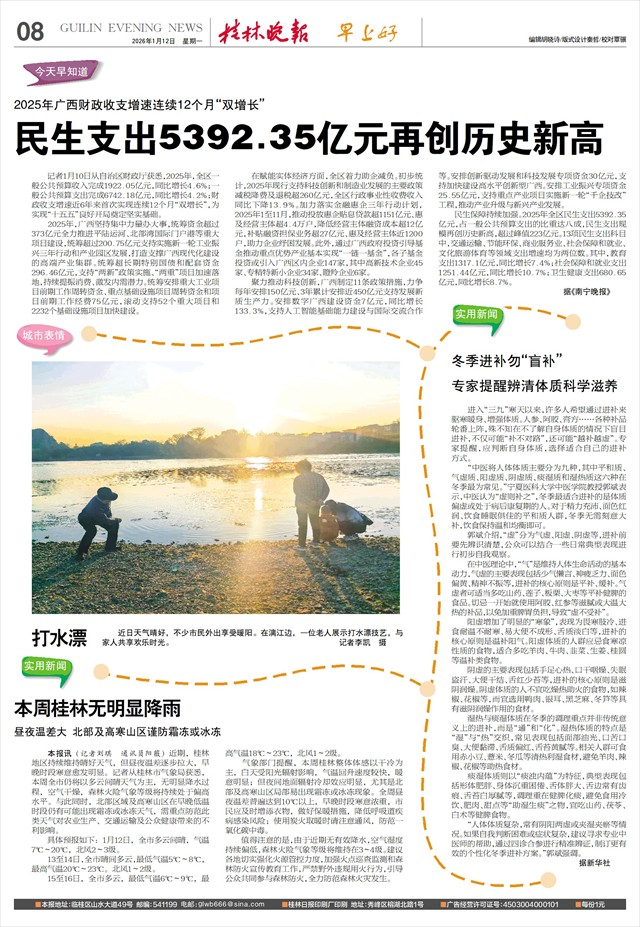 2025年广西财政收支增速连续12个月“双增长” 民生支出5392.35亿元再创历史新高   记者1月10日从自治区财政厅获悉,2025年,全区一般公共预算收入完成1922.05亿元,同比增长4.6%;一般公共预算支出完成6742.18亿元,同比增长4.2%;财政收支增速近6年来首次实现连续12个月“双增长”,为实现“十五五”良好开局奠定坚实基础。
