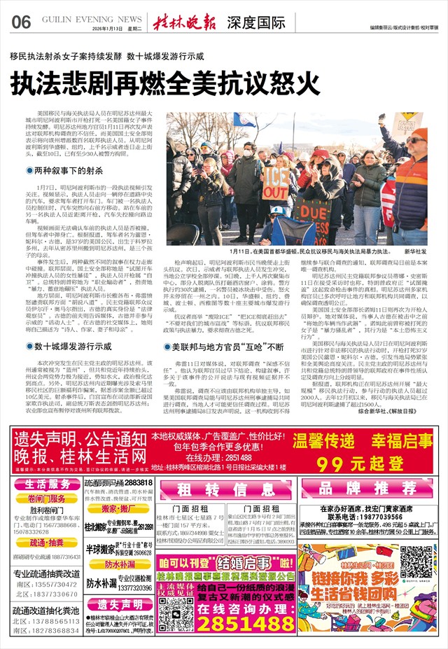 美国移民与海关执法局人员在明尼苏达州最大城市明尼阿波利斯市开枪打死一名美国籍女子事件持续发酵。明尼苏达州地方官员1月11日再次发声表达对联邦机构调查的不信任,而美国国土安全部则表示将向该州增派数百名联邦执法人员。从明尼阿波利斯到华盛顿、纽约,上千名示威者连日走上街头,截至10日,已有至少30人被警方拘留。
