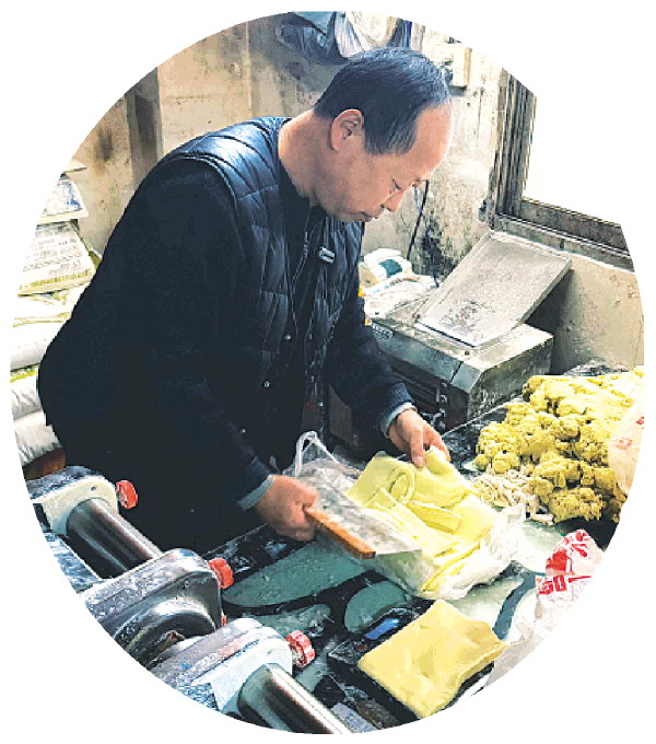 张师傅在制作板面。