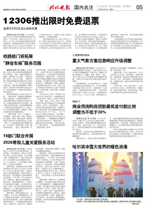 “静音车厢”服务范围   新华社北京1月17日电(记者樊曦)记者17日从中国国家铁路集团有限公司获悉,为进一步提升旅客出行体验,铁路部门大力推广“静音车厢”服务,自2月1日起,“静音车厢”服务将拓展至除动卧列车之外的“D”字头、“G”字头动力分散动车组列车,届时全国铁路提供“静音车厢”服务的列车将增至超8000列,更好地满足广大旅客对美好旅行生活的需求。