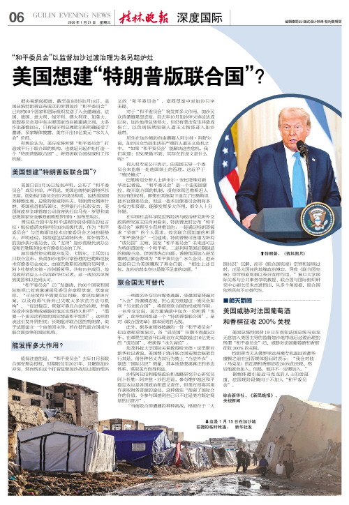 有舆论认为,美方欲将所谓“和平委员会”打造成平行于联合国的机构,也就是另起炉灶打造一个“特朗普版联合国”,将损害联合国权威和工作机制。