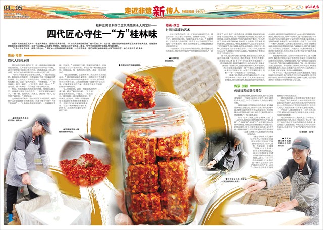 “通过非物质文化遗产保护工作,不但使很多流传民间的文化和技艺得到有效的抢救、保护,还有一些更是进一步做成了品牌,产生了非常大的社会和经济效益。”临桂区非物质文化遗产保护传承中心的相关负责人表示。一方小小的桂林腐乳,已从年产值一两千万元成长为年产值近亿元的产业,走出了一条在守正中求变再到破圈的可持续发展之路。