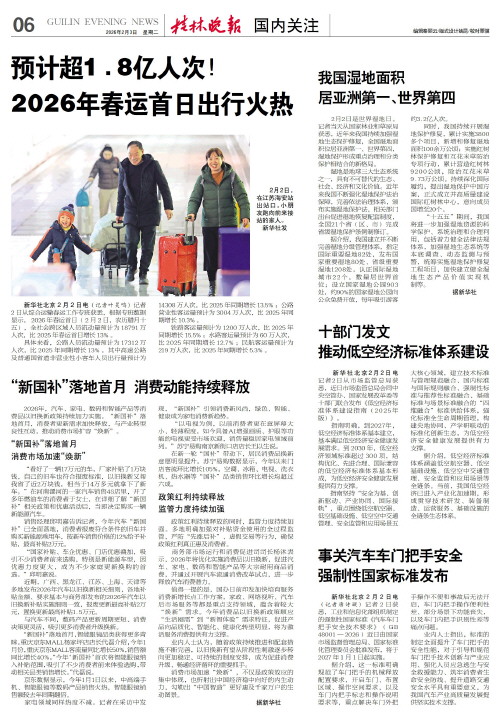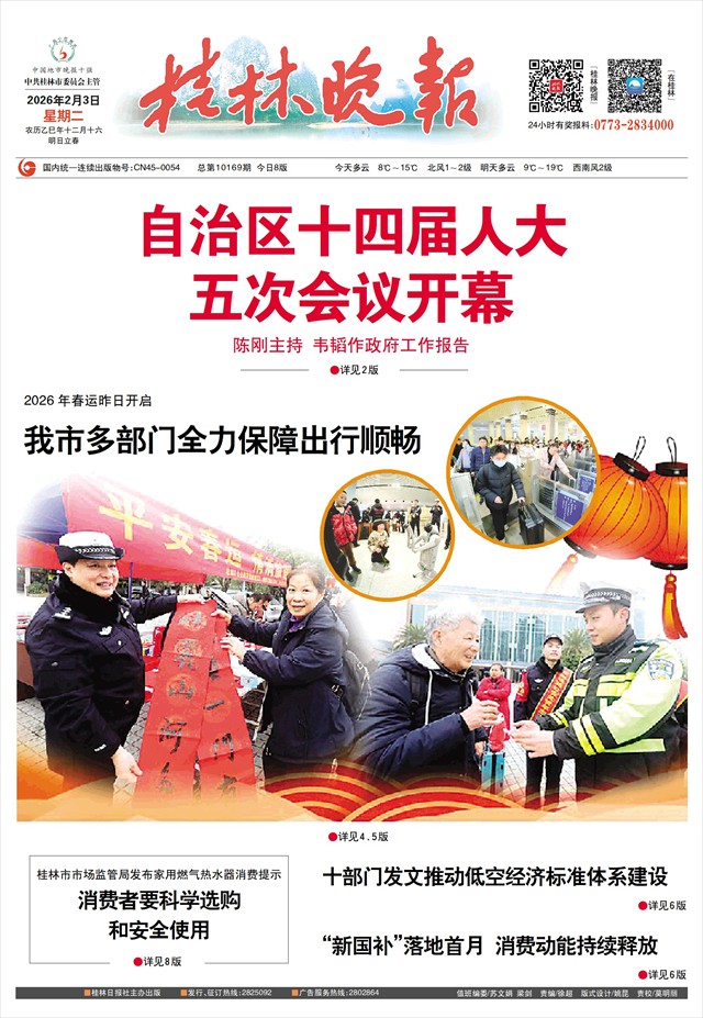 本报讯(记者苏展 通讯员吴成燕)2月2日,2026年春运大幕正式开启,记者从桂林高速公路部门获悉,从目前趋势来看,预计今年春运桂林辖区高速公路车流量将持续攀升,节前客流高峰预计出现在2月12日至15日。