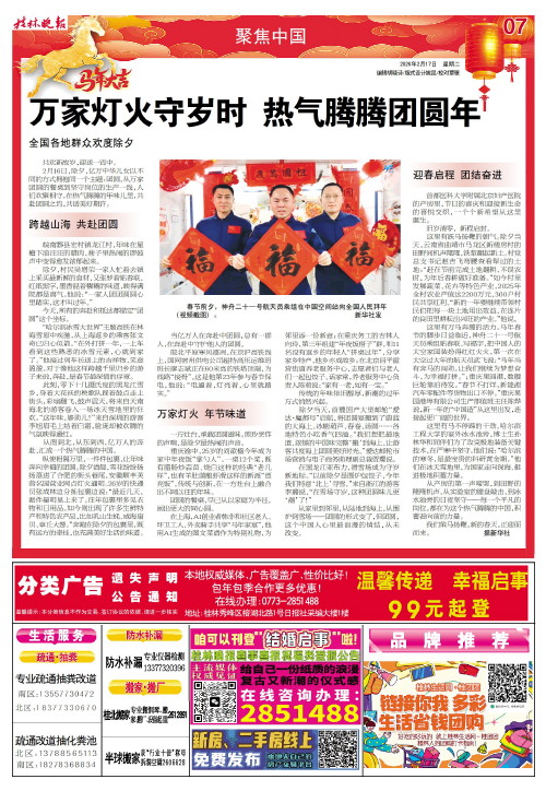 对桂林人而言,一顿团圆饭,一个团圆年,这份朴素的年味,从未改变。而在这万家团圆的时刻,总有一些人因职责在身无法与家人围坐一桌。他们奔忙在铁道和公路线上、待命在派出所和消防队中、值守在街巷路口……用自己的坚守,换来千家万户的平安喜乐。