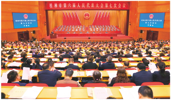 本报讯(记者陈娟)2月26日,桂林市第六届人民代表大会第七次会议在市会议中心大礼堂隆重开幕。来自各行各业的市人大代表肩负全市人民重托,依法履行职责。