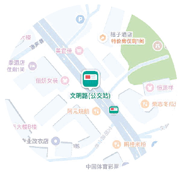 小店位于文明路公交站台后方。(手机导航软件截图)