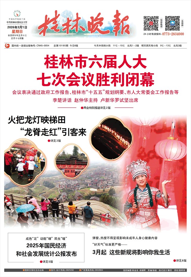 政务服务立法落地 制度保障赋能高效便民利企 《桂林市政务服务条例》表决通过   本报讯(记者陈娟 通讯员吴文婷)2月28日,桂林市第六届人民代表大会第七次会议表决通过《桂林市政务服务条例》(以下简称《条例》)。这标志着桂林政务服务工作正式迈入法治化、规范化、制度化发展新阶段,为高效便民利企、优化营商环境、推动经济社会高质量发展提供坚实法治保障和硬核制度支撑。