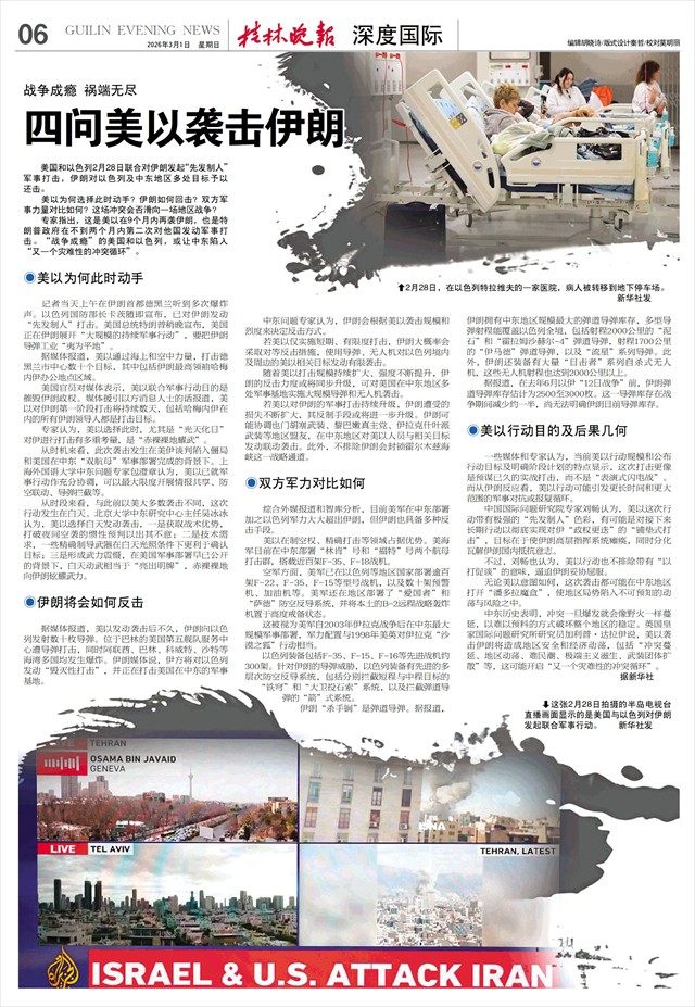 战争成瘾 祸端无尽 四问美以袭击伊朗   美国和以色列2月28日联合对伊朗发起“先发制人”军事打击,伊朗对以色列及中东地区多处目标予以还击。