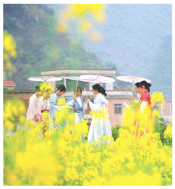 花海间,数十名身着汉服的年轻姑娘衣袂飘飘、穿梭其间,手执油纸伞、团扇回眸一笑,古韵与繁花相映成趣,与自然风景形成“人在画中游”的诗意画卷。“没想到在家门口就能拍到这么美的汉服大片,欢迎大家来玩。”来自该县的摄影爱好者李先生一边按动快门一边赞叹。